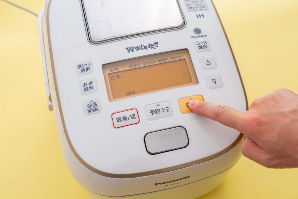 炊飯器を「おかゆモード」に設定し、炊飯する。