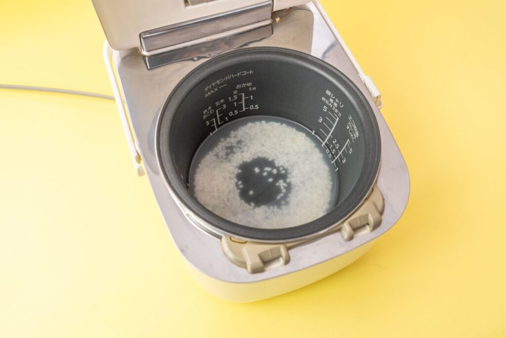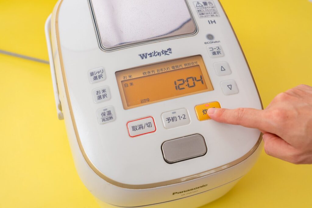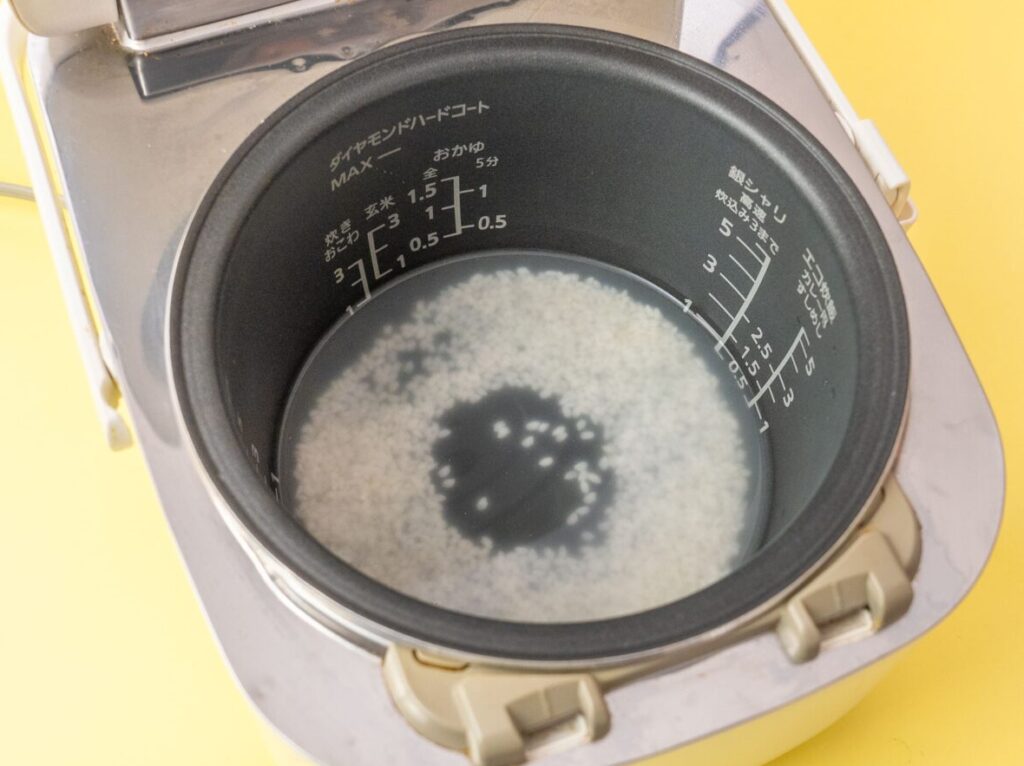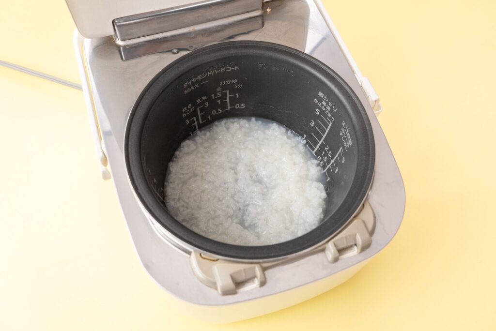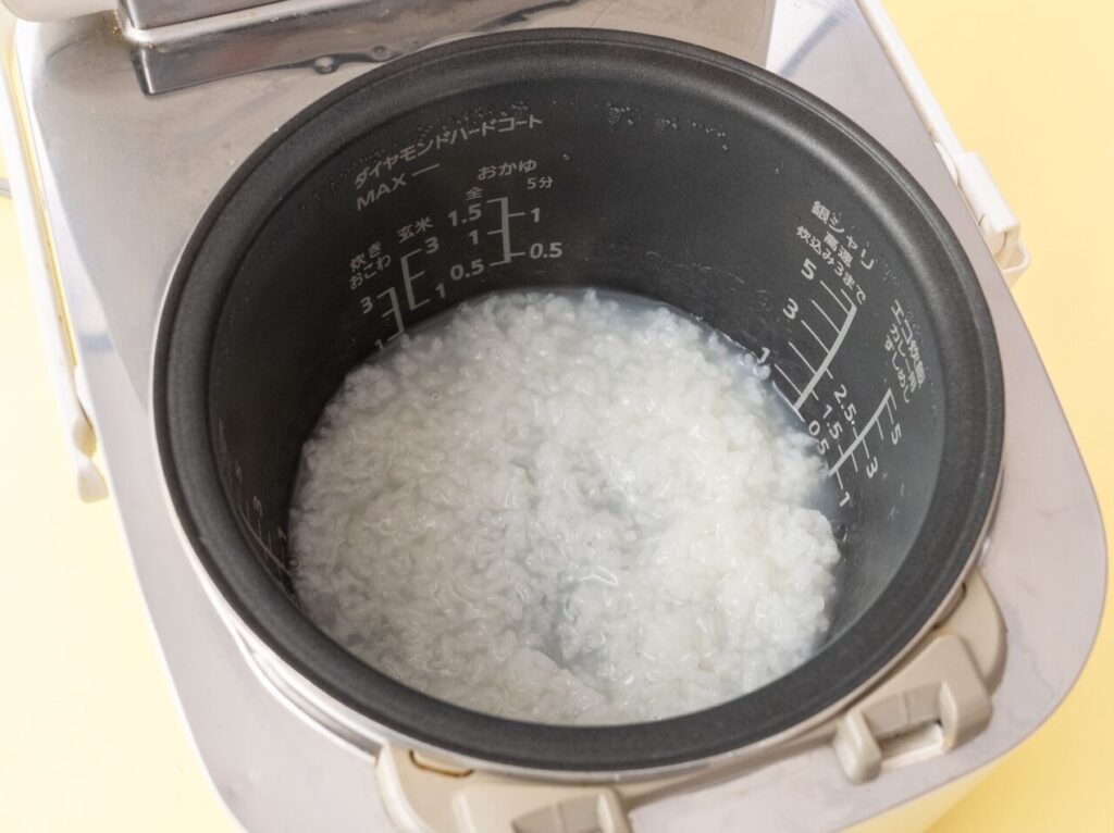 炊飯器を「おかゆモード」に設定し、炊飯する。