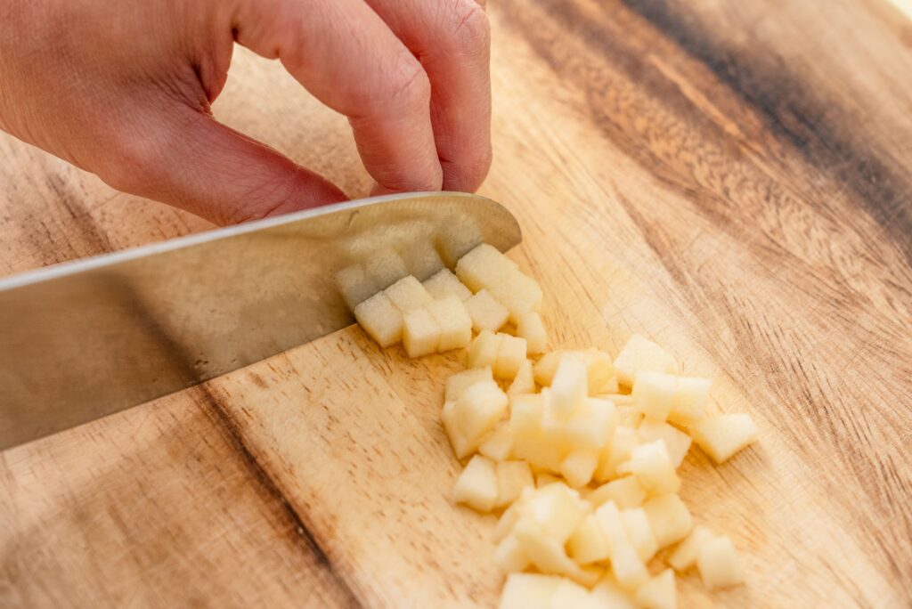 りんごの皮をむき、5mmほどの角切りにする。