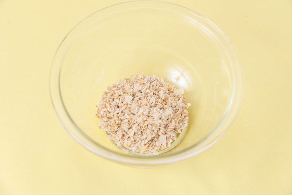 耐熱皿にオートミールを入れる。