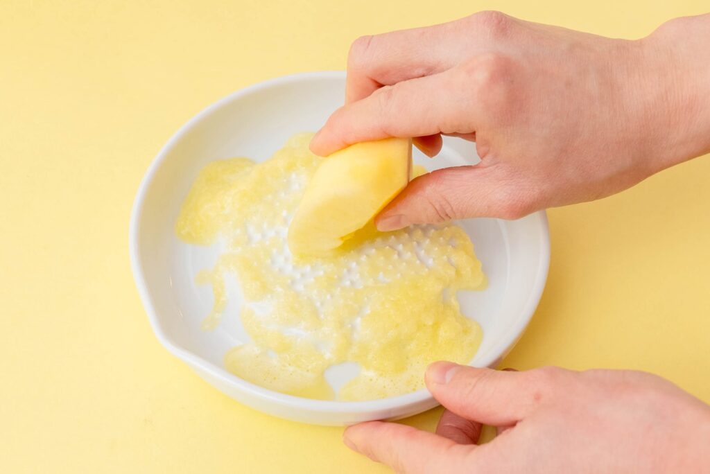 ②に湯ざましを加え、なめらかになるまでのばす(赤ちゃんの発達に合わせて湯ざましの量は調整してください)。