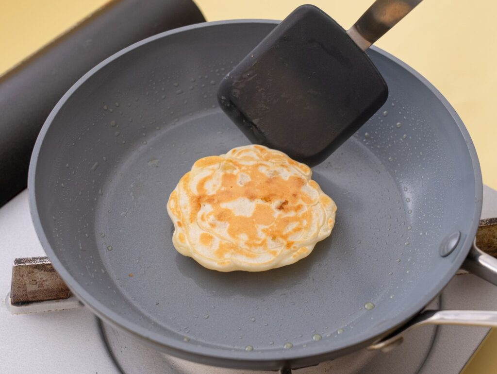 フライパンにサラダ油を中火で熱し、②を1/2量ずつ好みの耐熱性の型に流し入れて焼く。焼き色がついたら形を取り外して裏返し、ふたをして弱火で約2〜3分、中に火が通るまで焼く。