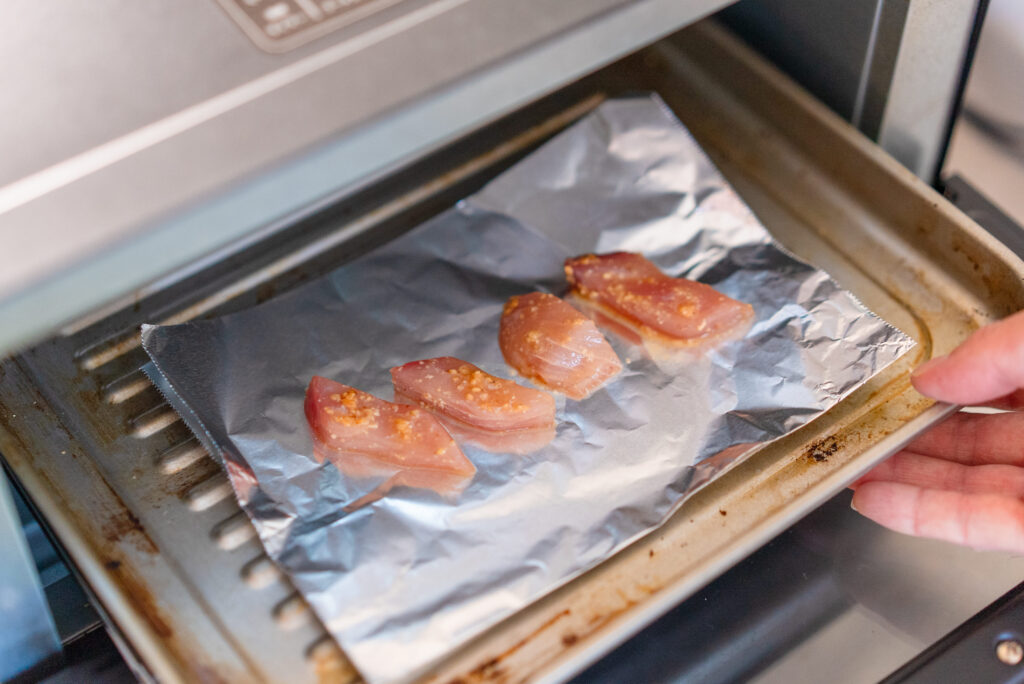 ホイルに②を並べ、オーブントースターで火が通るまで約8分加熱する。