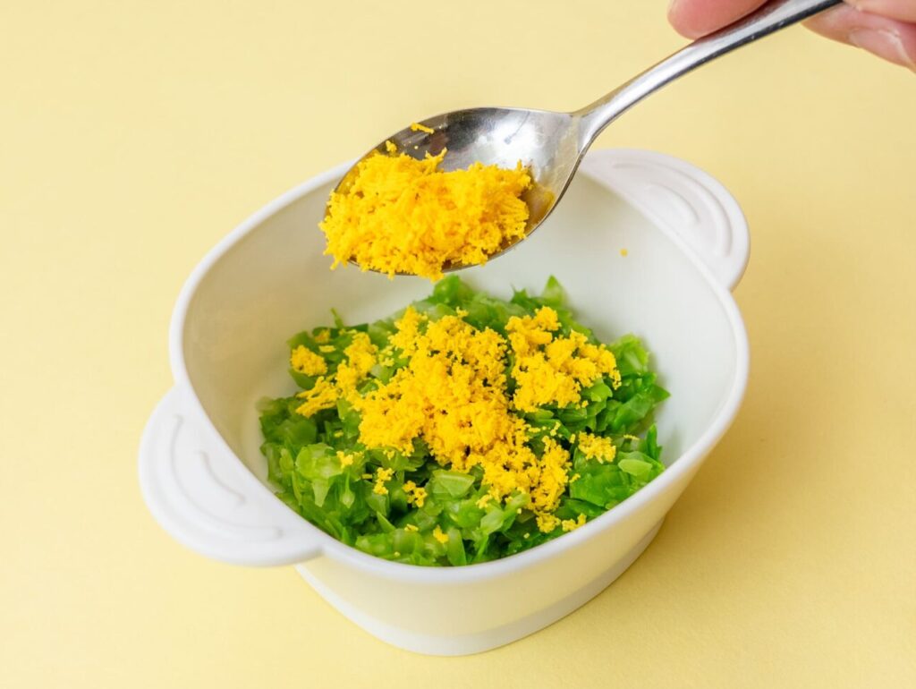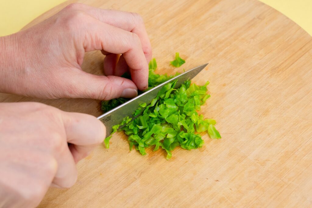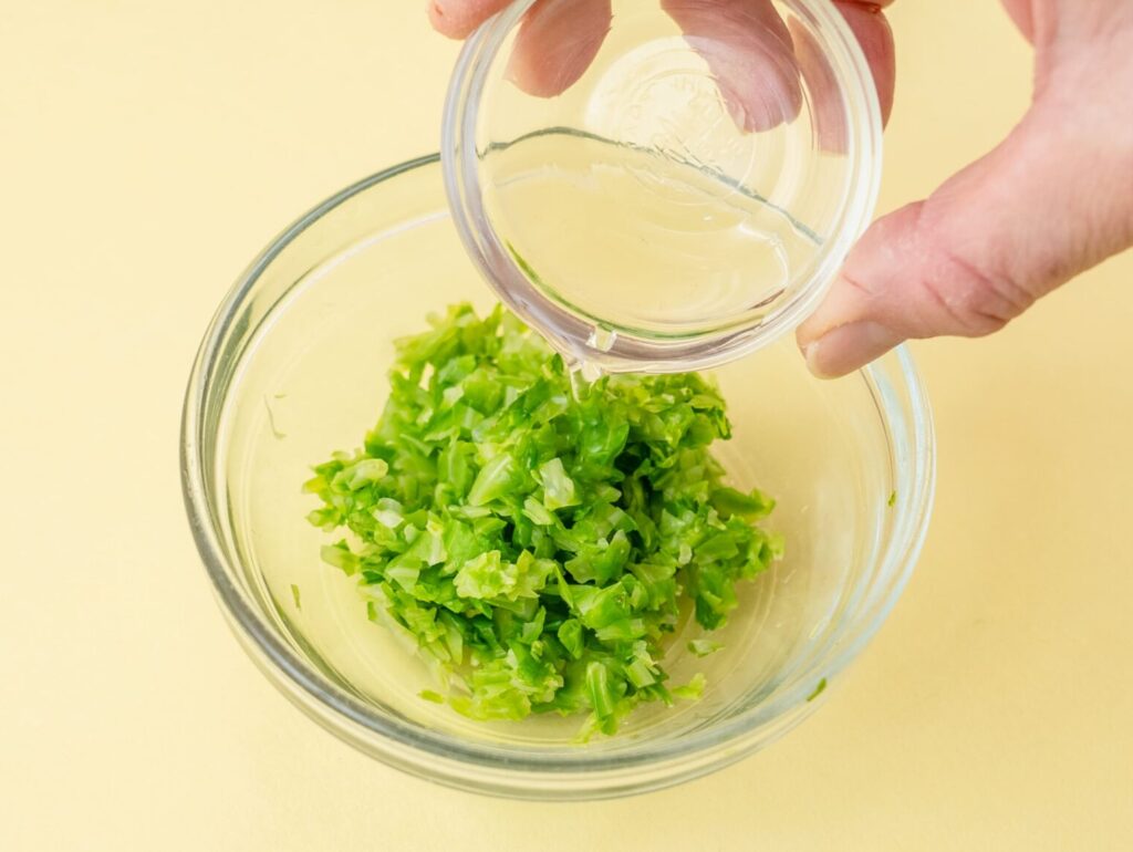 キャベツはやわらかくなるまでゆでて、みじん切りにする。ゆで汁はとっておく。
