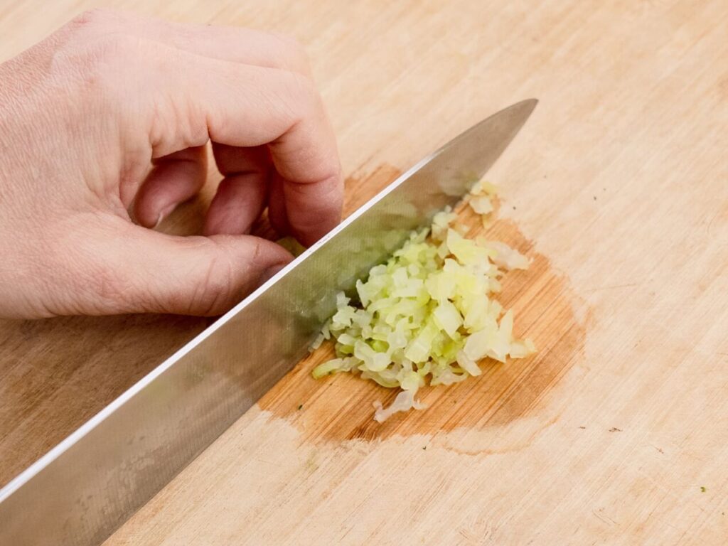 キャベツはやわらかくなるまでゆでて、みじん切りにする。