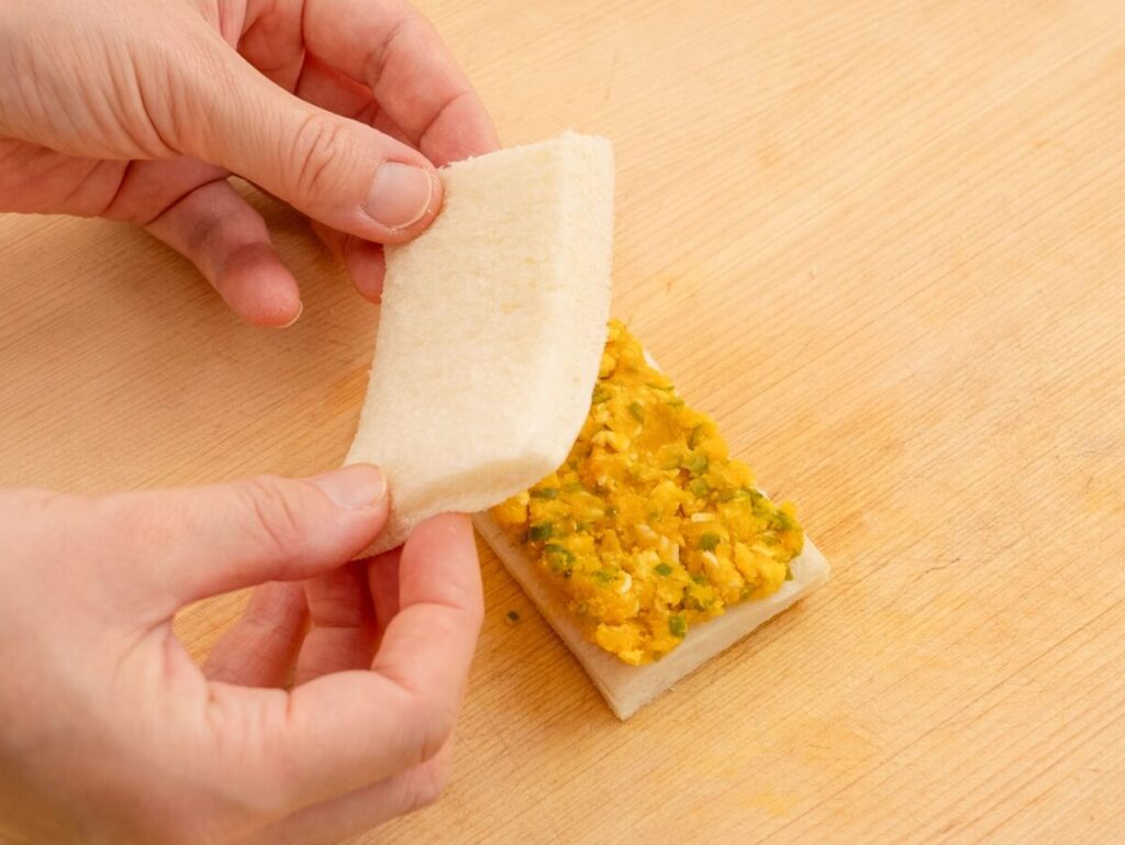 ①で③の半量をはさみ、食べやすい大きさに切る。