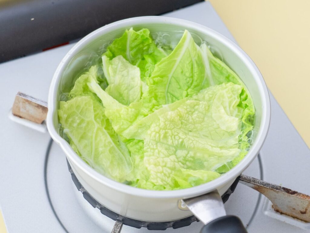 白菜がやわらかくなったら取り出し、みじん切りにする。