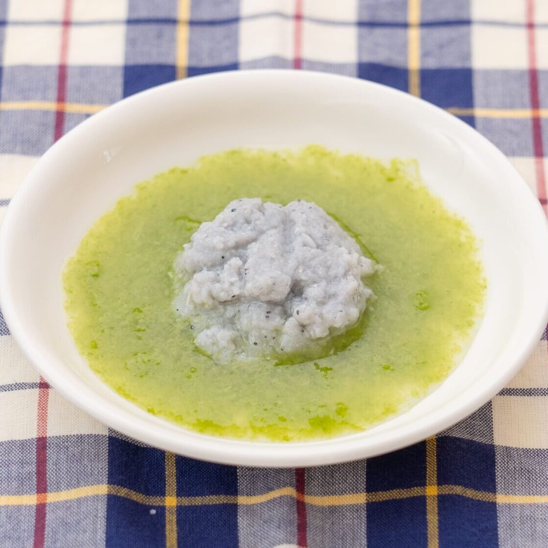- 5~6ヶ月ごろ(初期)を目安にしています。ゆるいポタージュ状ぐらいのかたさを目安に、お子様の様子に合わせて食材の大きさや固さ、量は調整してください。