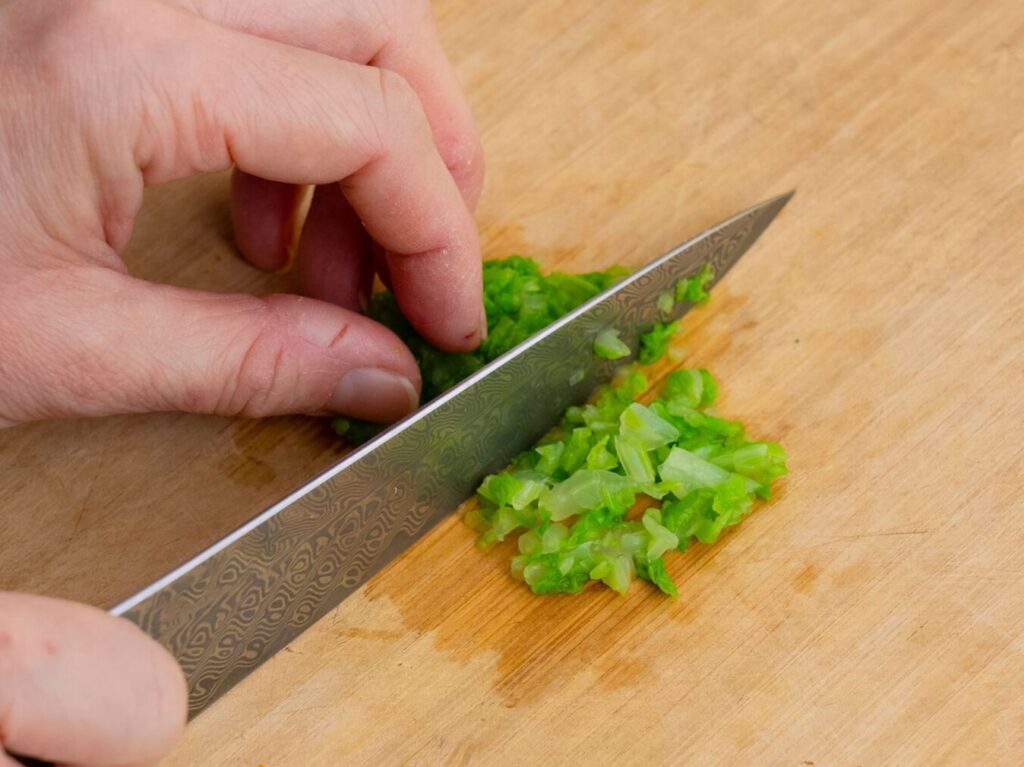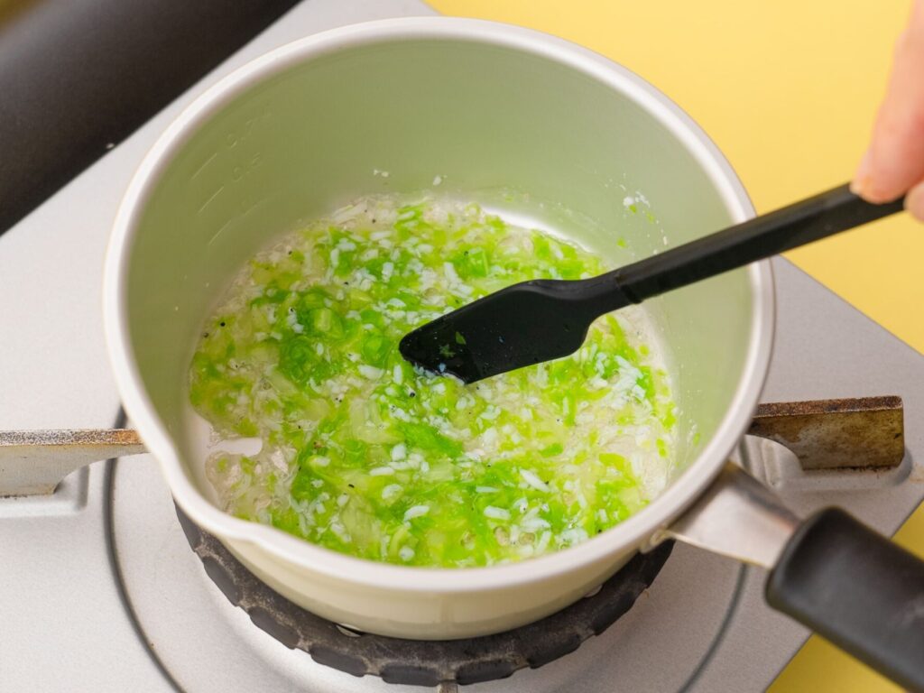 白菜はやわらかくなるまでゆでてみじん切りにする。ゆで汁はとっておく。