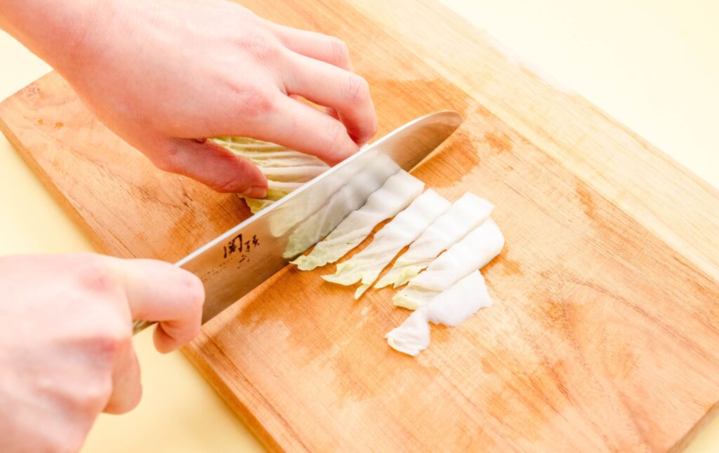 白菜は1cm長さの細切りにする。