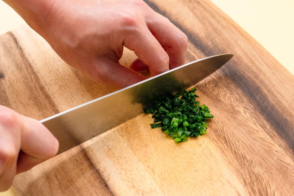 小松菜はやわらかくゆでて粗みじん切りにする。
