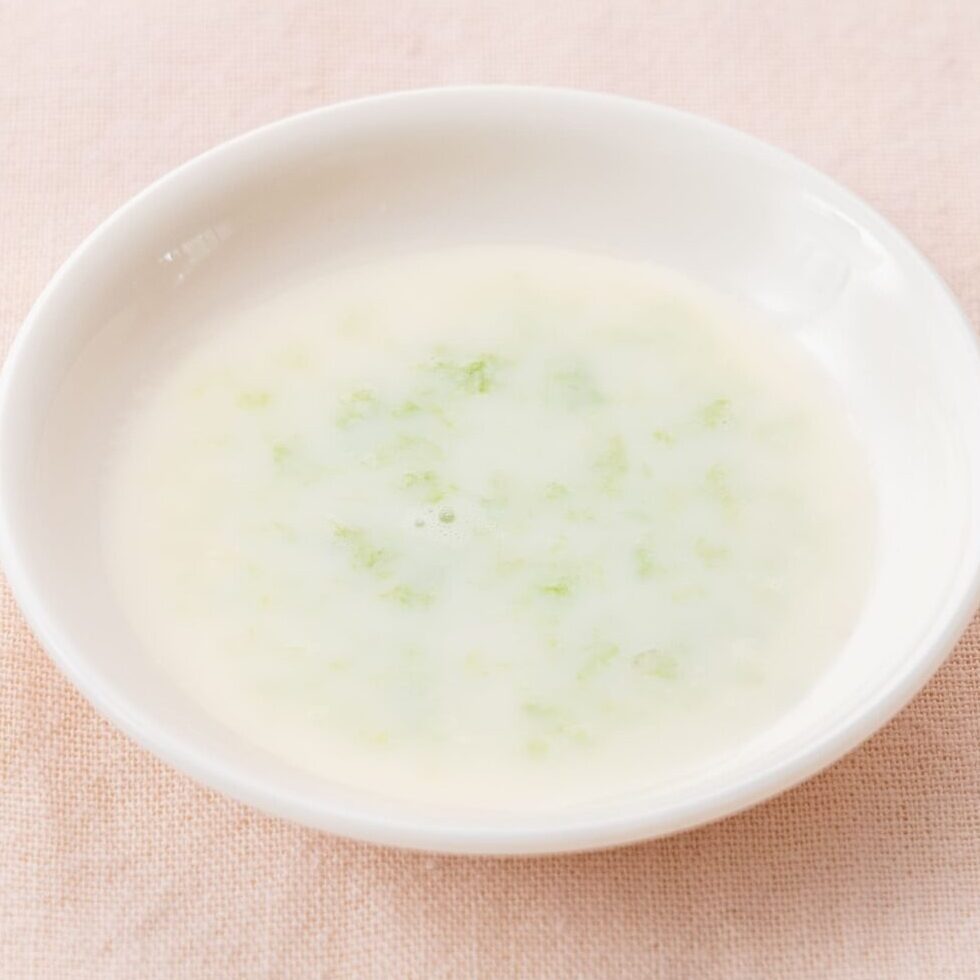 - 5~6ヶ月ごろ(初期)を目安にしています。ゆるいポタージュ状ぐらいのかたさを目安に、お子様の様子に合わせて食材の大きさや固さ、量は調整してください。