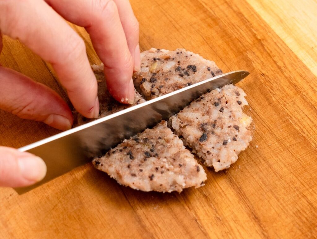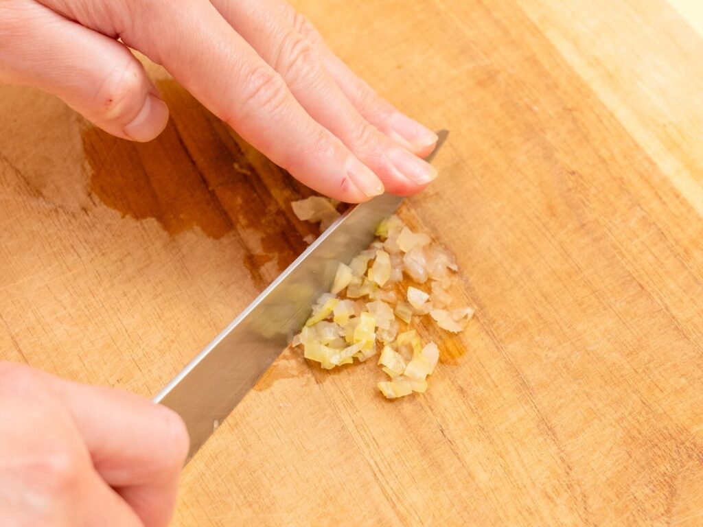 玉ねぎはやわらかくなるまでゆでて、みじん切りにする。