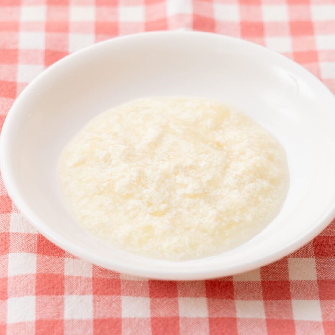 • 5~6か月ごろ(初期)を目安にしています。ゆるいポタージュ状ぐらいのかたさを目安に、お子さまの様子に合わせて食材の大きさやかたさ、量は調整してください。