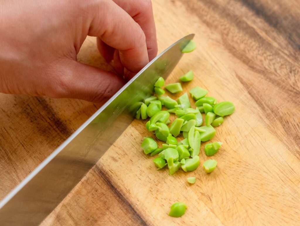 枝豆はゆでて解凍して薄皮を取り除き、粗みじん切りにする。