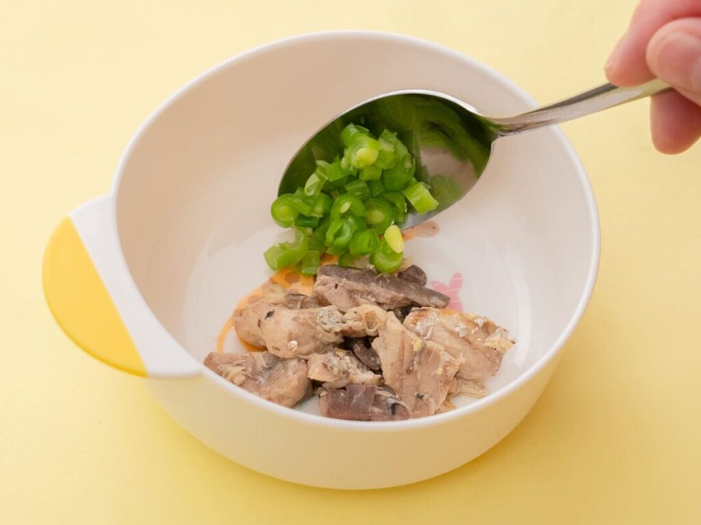 - 初めての食材を与えるときは食物アレルギーに注意し、複数の食材といっしょに与えることはせず、小さじ1程度の量を午前中に与え、食後の様子を見守ってください。アレルギーのリスクがある場合やアレルギーと診断されている場合は、医師の指導に従ってください。