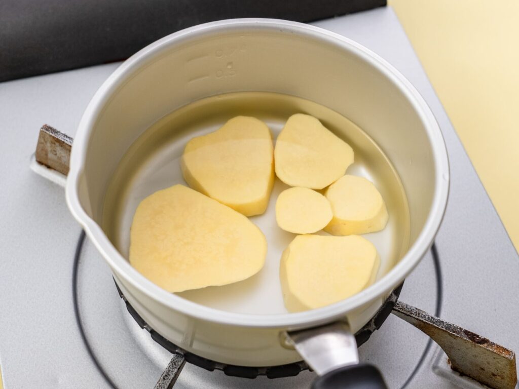 小鍋に①とかぶるくらいの水を入れて柔らかくなるまで茹でる。