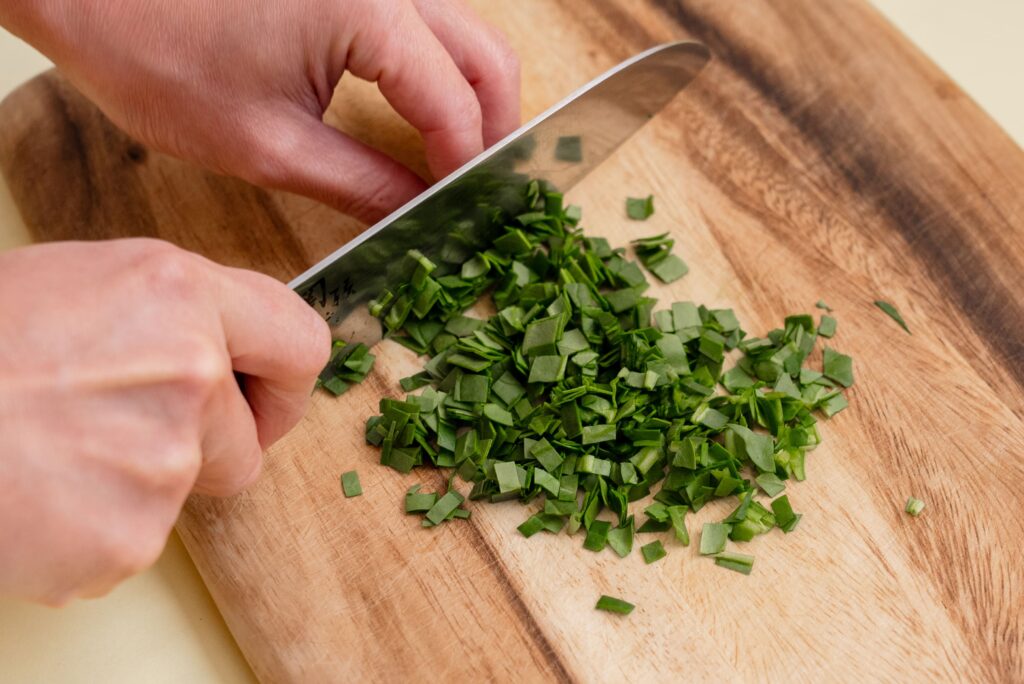 ほうれん草とにんじんは2〜3mm程度にカットし、やわらかくゆでる。