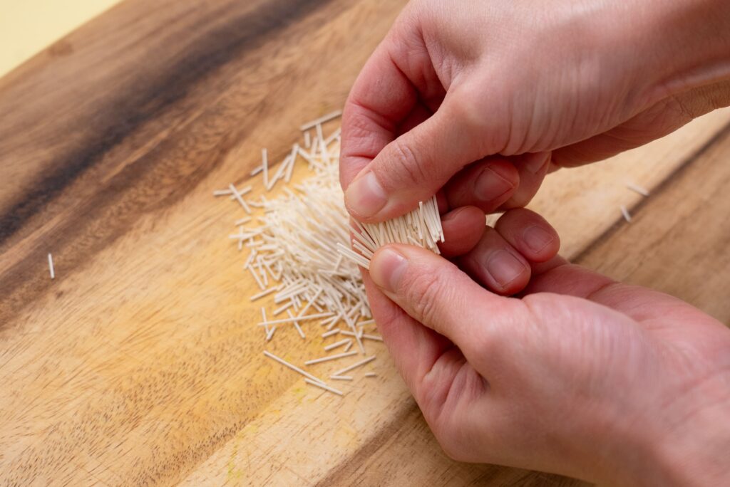 そうめんは乾燥した状態で1cm長さに折っておく。