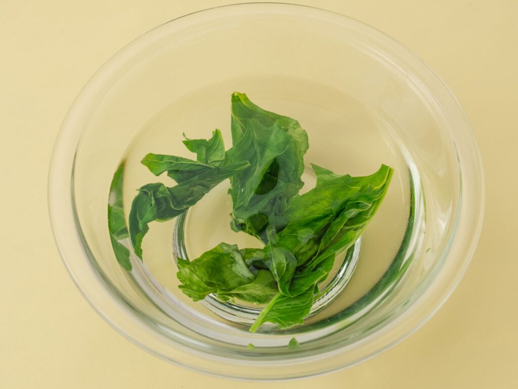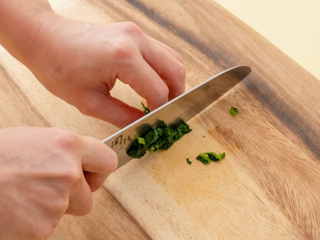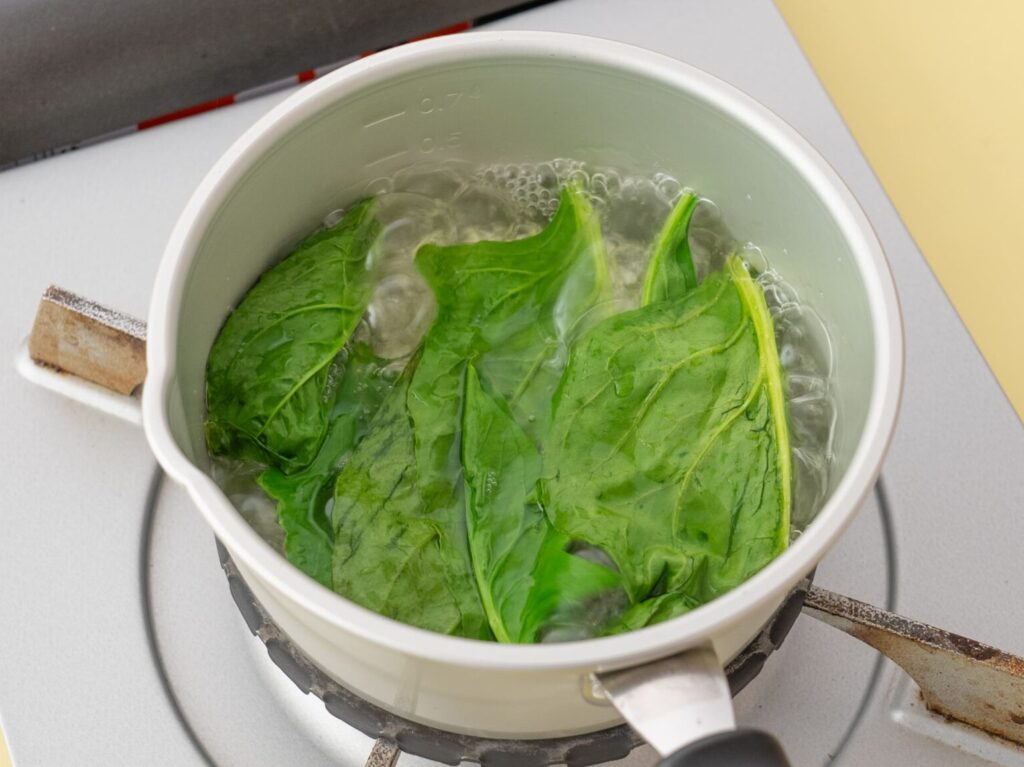 小鍋に湯を沸かし、ほうれん草を入れてやわらかくなるまでゆでる。