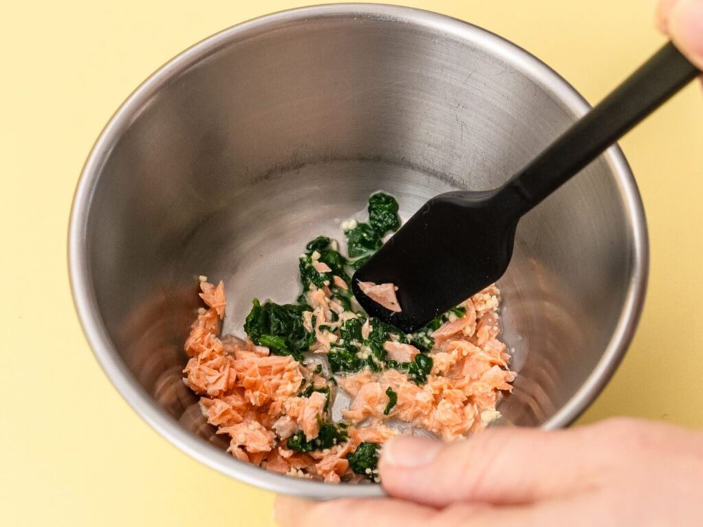 ほうれん草はやわらかくゆでて水にさらして水けをきり、みじん切りにする。