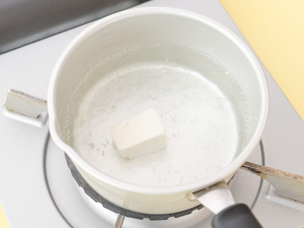 豆腐はゆで、すりつぶす。(電子レンジの場合はラップをせずに30秒ほど加熱して軽く水気をきる)