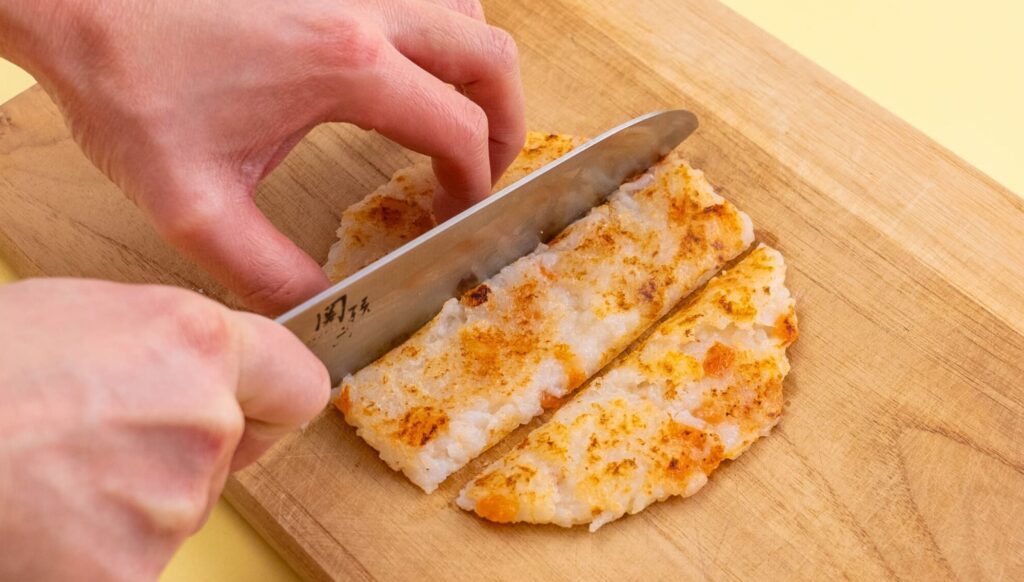 両面を4分ほどかけてこんがりと焼き、食べやすく切る。