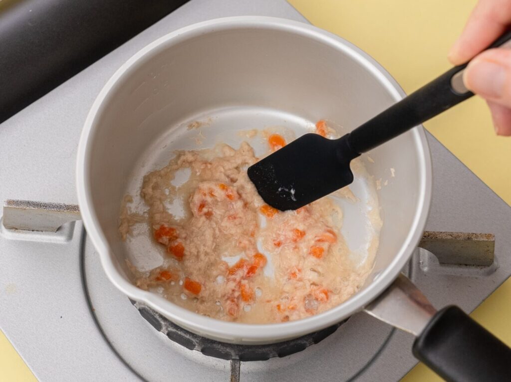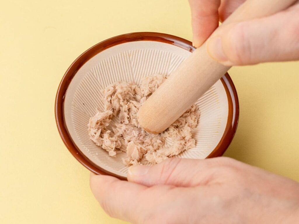 ツナは塩抜き&油抜き後、すりつぶす。