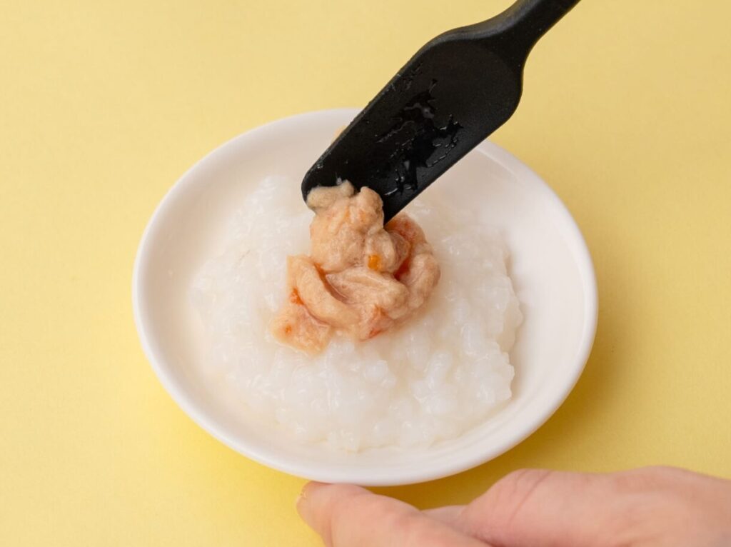 - 7~8ヶ月ごろ(中期)を目安にしています。指で楽につぶすことのできる絹ごし豆腐くらいのかたさを目安に、お子様の様子に合わせて食材の大きさや固さ、量は調整してください。