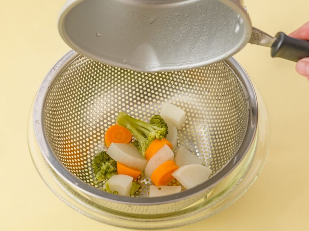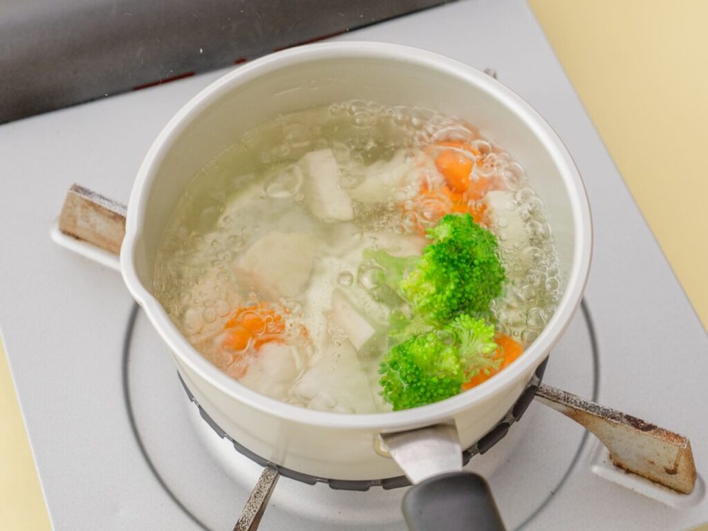 ※ゆでた野菜も離乳食の材料として使えます。野菜だしは小分けにして冷凍保存しておくとスープを作ったり飲み物として添えたり何かと使えて便利ですよ。