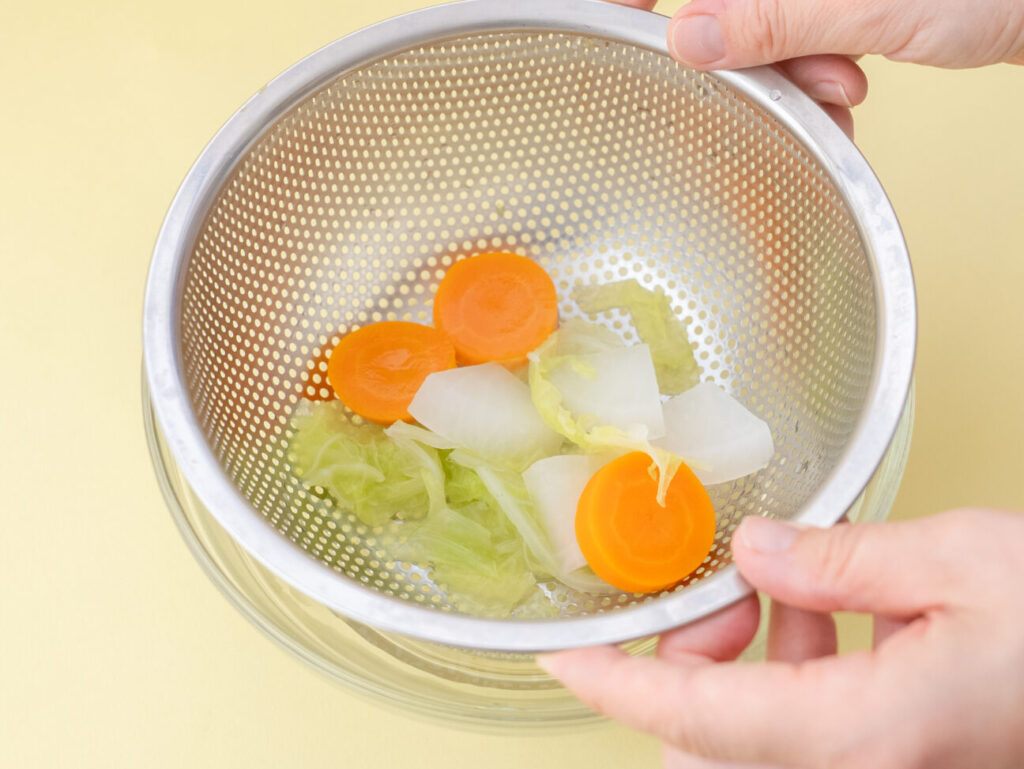 冷めたらゆで汁をザルなどでこして出来上がり。